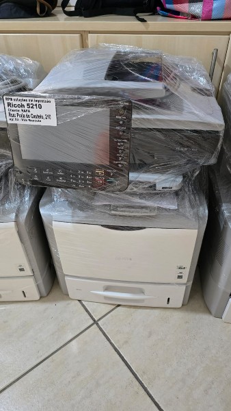 Impressora multifuncional Ricoh MP 5210, em pleno funcionamento, já testada e pronta para uso. Equipamento ideal para escritórios, empresas e prestadores de serviços gráficos que precisam de impressão, cópia e digitalização de alto desempenho.