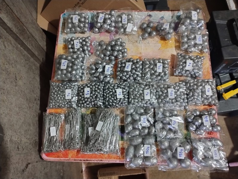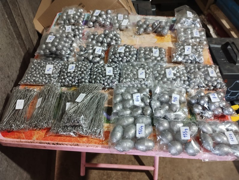 Lote com: Aproximadamente 25 Kgs de chumbada de várias gramas E 500 encastoador medida 20x10