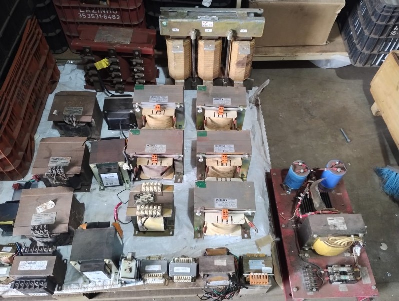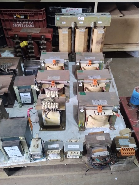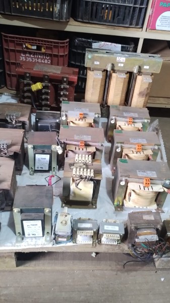 Lote com: Aproximadamente 250 peças de transformador várias potência e voltagem