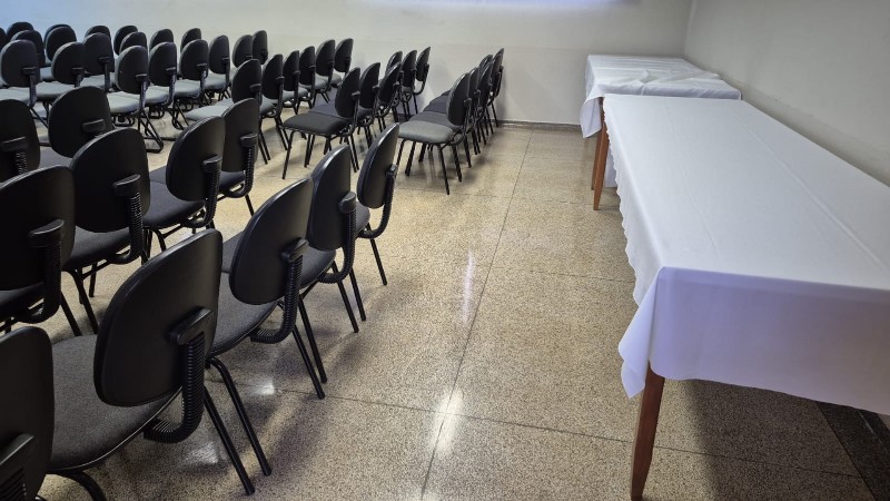 APROX. 01 TELA PROJEÇÃO ELETRÔNICA 3MTS; APROX. 108 CADEIRAS; 02 ARMÁRIOS; 03 MESAS. - (VÍDEO). - SALA AUDITÓRIO. - UNID. BARRA - LOC. IGARAÇU DO TIETÊ