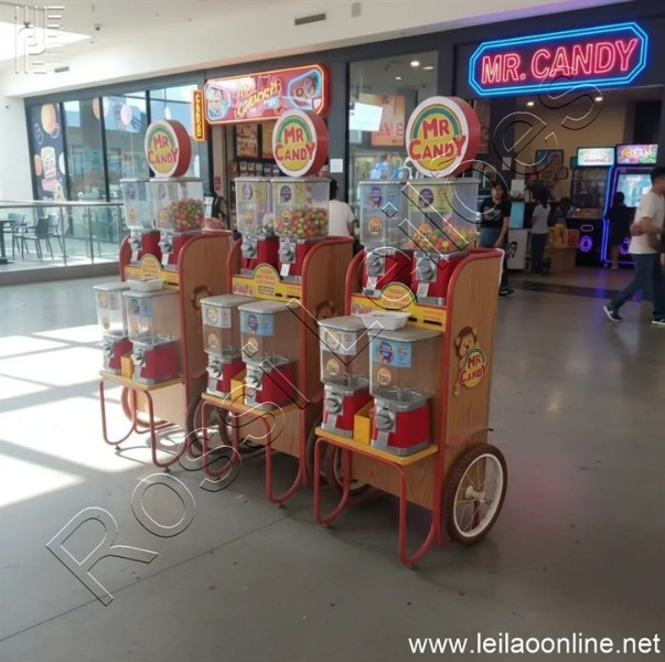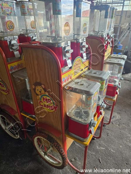 01 Carrinho com 04 Vending Machine de chicletes/ bolinhas cada