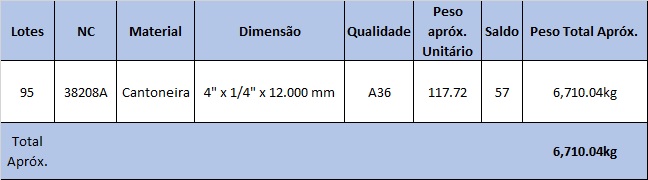 | Nº do lance | Lance | Data | Arrematante |