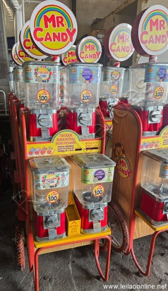 01 Carrinho com 04 Vending Machine de Chicletes/ bolinhas cada