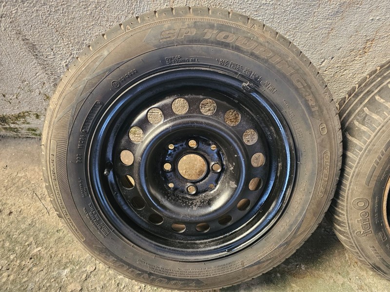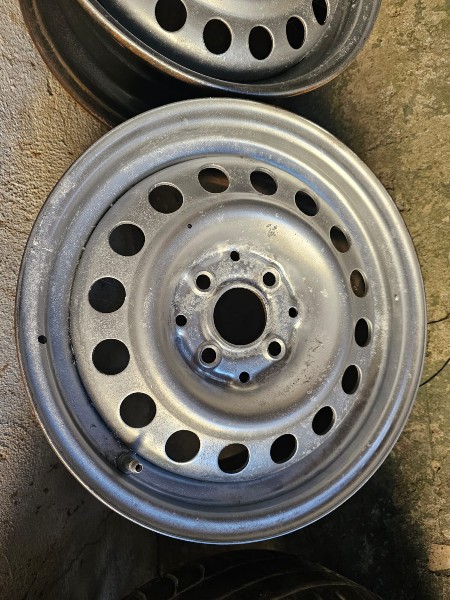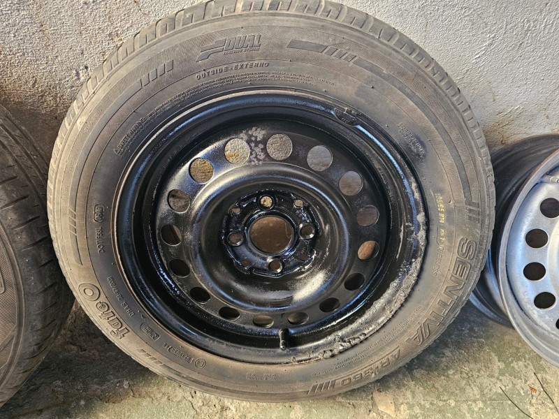 JOGO DE 05 RODAS DE FERRO ARO 14; DUAS RODAS COM PNEUS