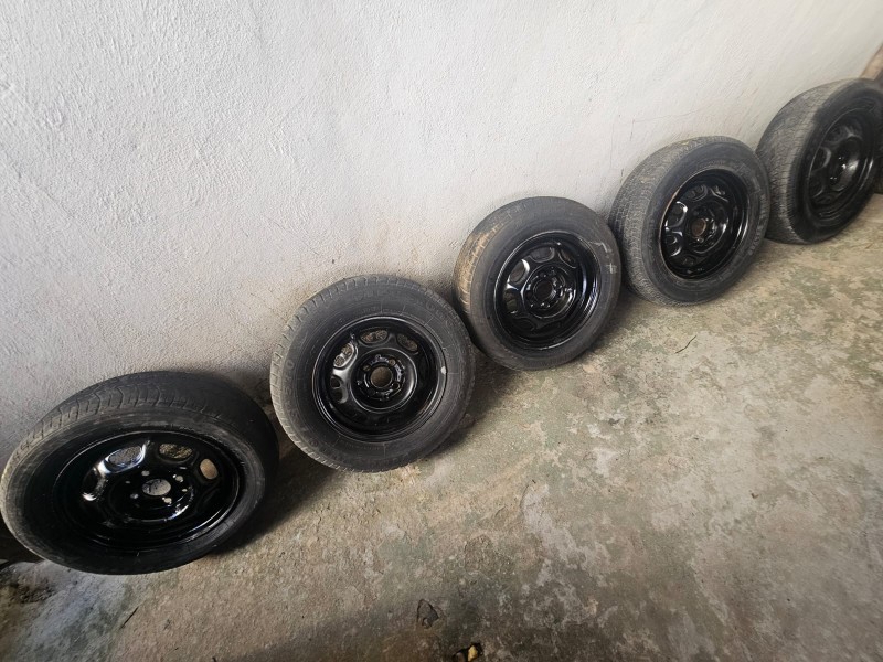 JOGO DE 05 RODAS DE FERRO COM PNEUS ARO 13