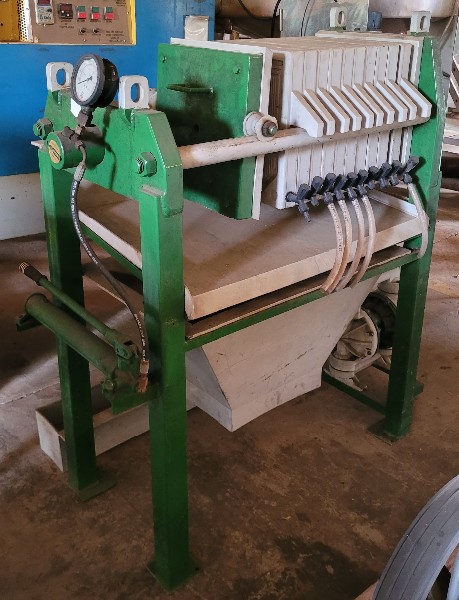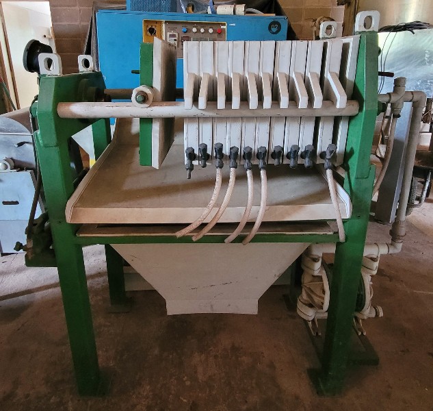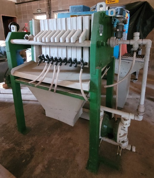 Filtro Prensa, Marca: GRABE com 10 Placas em PP, Medidas das Placas: 400x400mm e Bomba Pneumática de Diafragma.